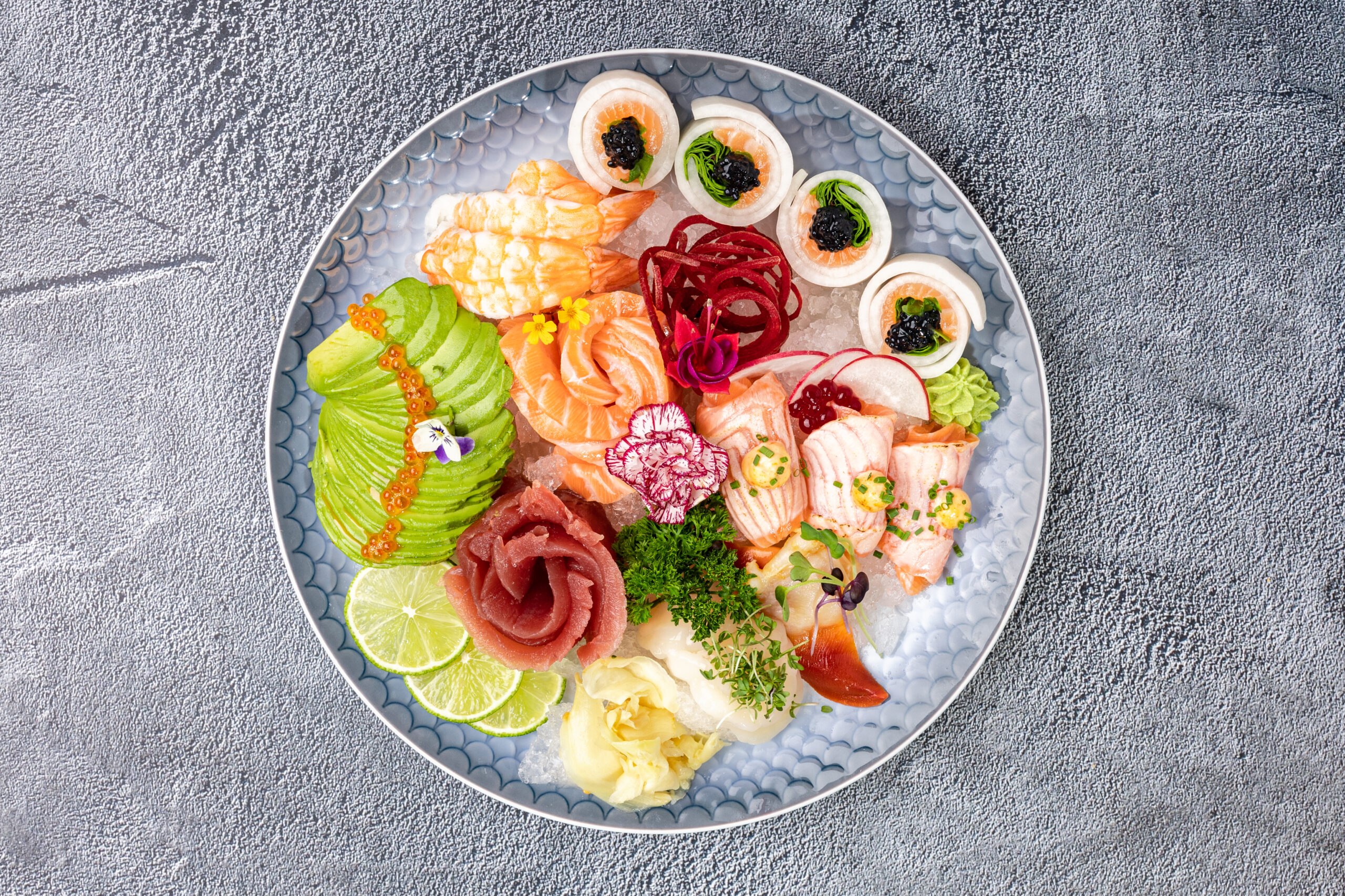 Sashimi Deluxe kr.228.00 Antal stk. Tilføj til kurv Kategori: Sashimi Beskrivelse Beskrivelse 12 tykkeskiver af laks, tun, rejeer, hokkigai. 5 shake daikon. 1 fisk tatar. Relaterede varer Sashimi Tun kr.98.00 Tilføj til kurv Sashimi laks kr.88.00 Tilføj til kurv